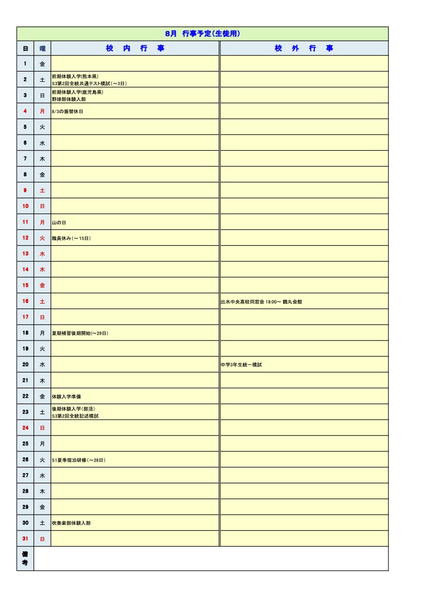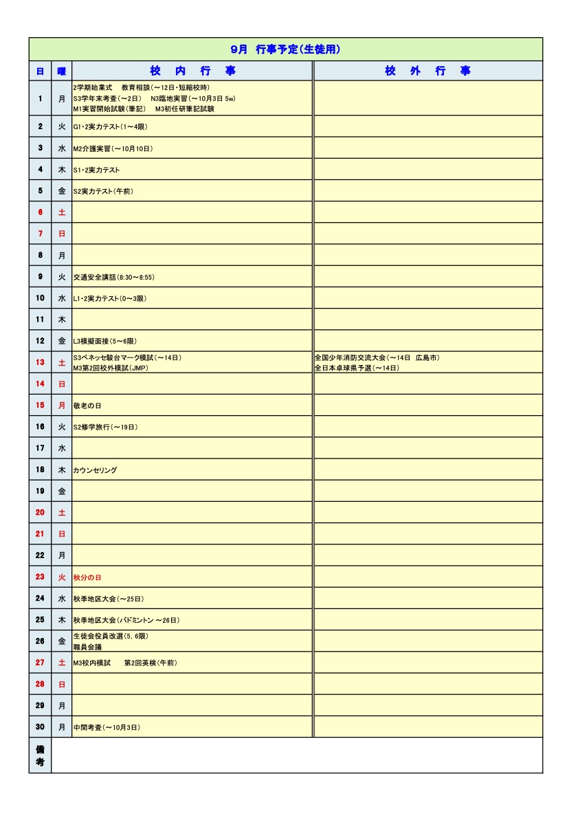※ Gは普通課程 Lは教養課程 Sは特進課程 Mは医療福祉科
