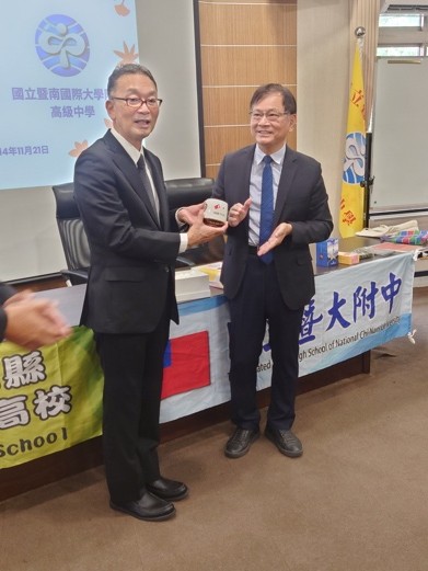 歓迎式では記念品交換が行われ、曁南附中側からは両校の校章をあしらった特製の茶杯や、台湾の特色を感じられる品々をいただき、心より感謝申し上げます。
